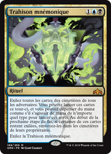 | Rules | Exile all opponents' graveyards. You may cast spells from among those cards this turn, and you may spend mana as though it were mana of any type to cast those spells. At the beginning of the next end step, if any of those cards remain exiled, return them to their owners' graveyards. Exile Mnemonic Betrayal. |