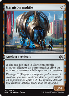 | Rules | Whenever Mobile Garrison attacks, untap another target artifact or creature you control. Crew 2 (Tap any number of creatures you control with total power 2 or more: This Vehicle becomes an artifact creature until end of turn.) |
