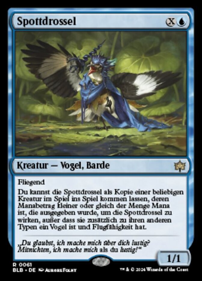 | Rules | Flying You may have Mockingbird enter the battlefield as a copy of any creature on the battlefield with mana value less than or equal to the mana spent to cast Mockingbird, except it is a Bird in addition to its other types and has flying. |
