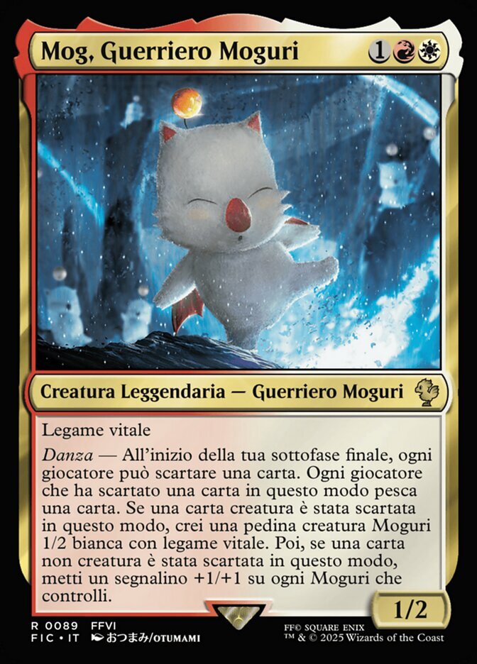| Rules | Lifelink Dance — At the beginning of your end step, each player may discard a card. Each player who discarded a card this way draws a card. If a creature card was discarded this way, you create a 1/2 white Moogle creature token with lifelink. Then if a noncreature card was discarded this way, put a +1/+1 counter on each Moogle you control. |