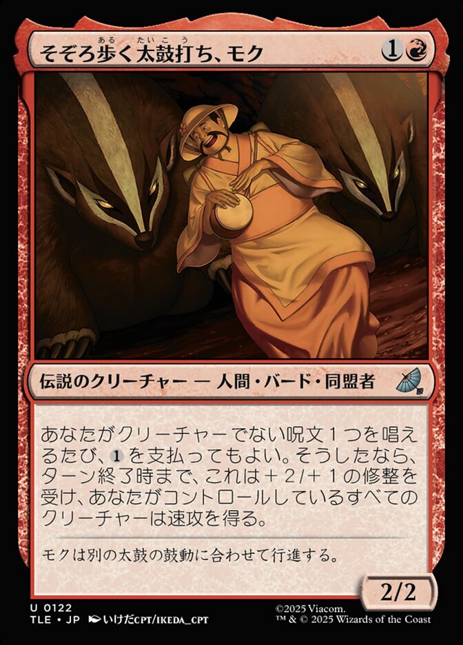 | Rules | Whenever you cast a noncreature spell, you may pay . If you do, Moku gets +2/+1 and creatures you control gain haste until end of turn. |