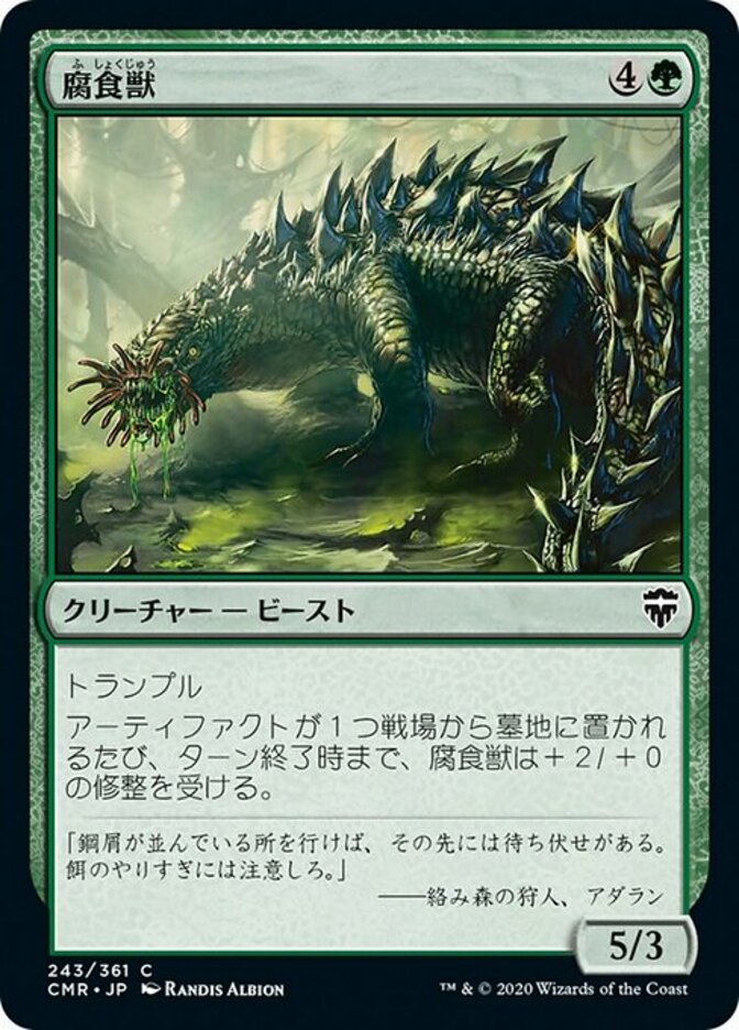| Rules | Trample Whenever an artifact is put into a graveyard from the battlefield, Molder Beast gets +2/+0 until end of turn. |