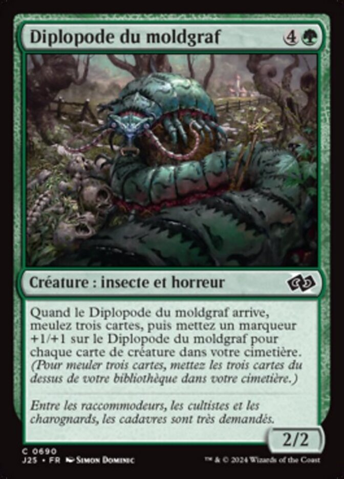 | Rules | When Moldgraf Millipede enters the battlefield, mill three cards, then put a +1/+1 counter on Moldgraf Millipede for each creature card in your graveyard. (To mill a card, put the top card of your library into your graveyard.) |