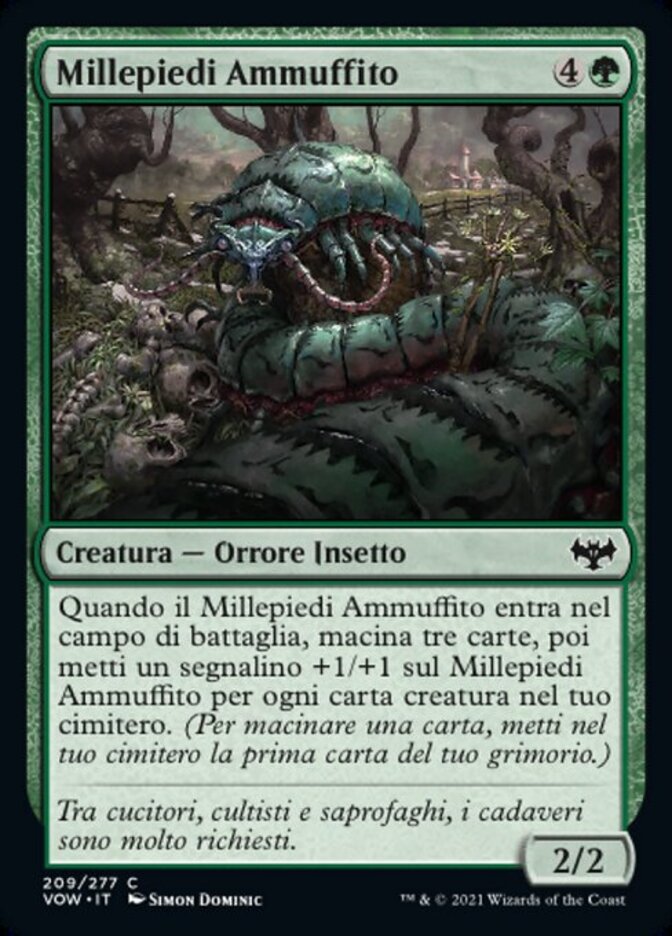| Rules | When Moldgraf Millipede enters the battlefield, mill three cards, then put a +1/+1 counter on Moldgraf Millipede for each creature card in your graveyard. (To mill a card, put the top card of your library into your graveyard.) |