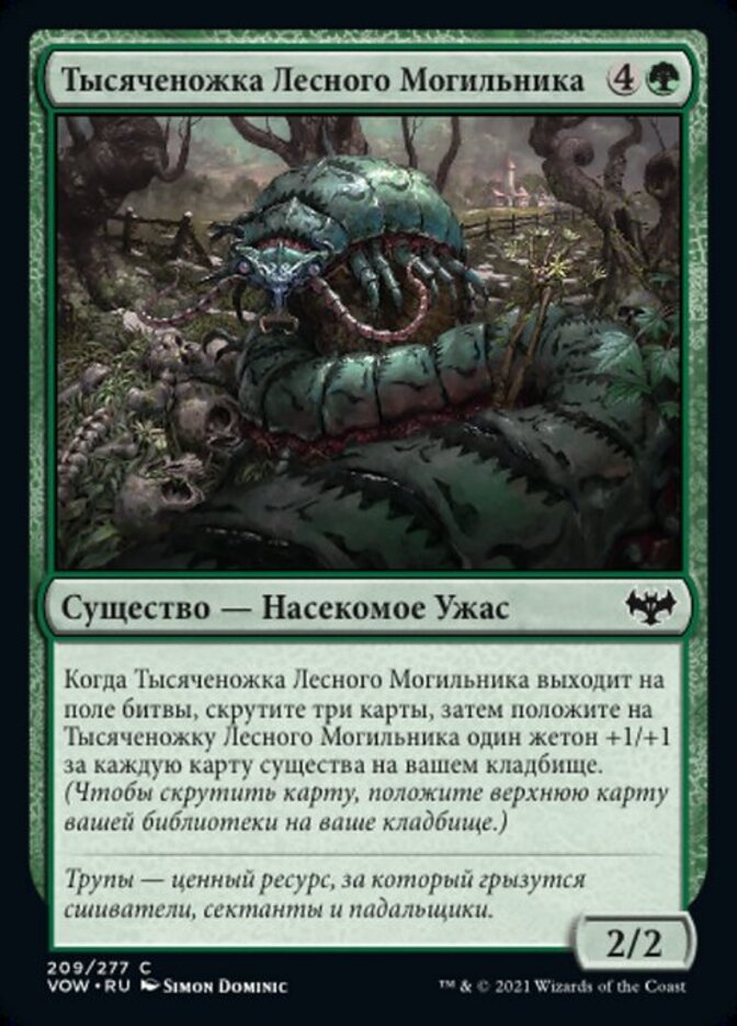 Rules When Moldgraf Millipede enters the battlefield, mill three cards, then put a +1/+1 counter on Moldgraf Millipede for each creature card in your graveyard. (To mill a card, put the top card of your library into your graveyard.)