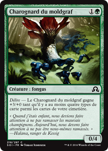 | Rules | Delirium — Moldgraf Scavenger gets +3/+0 as long as there are four or more card types among cards in your graveyard. |