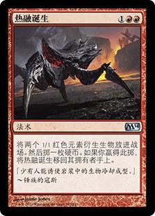 | Rules | Create two 1/1 red Elemental creature tokens, then flip a coin. If you win the flip, return Molten Birth to its owner's hand. |