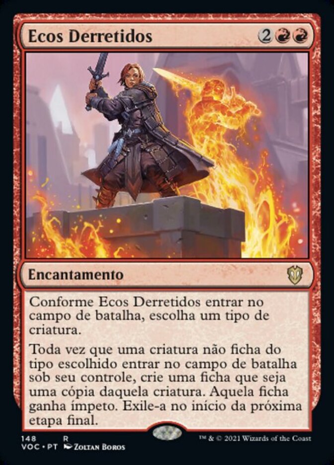 | Rules | As Molten Echoes enters the battlefield, choose a creature type. Whenever a nontoken creature of the chosen type enters the battlefield under your control, create a token that's a copy of that creature. That token gains haste. Exile it at the beginning of the next end step. |