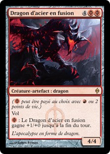 | Rules | ( can be paid with either or 2 life.) Flying : Moltensteel Dragon gets +1/+0 until end of turn. |