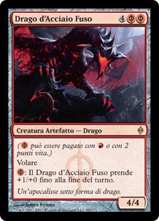 | Rules | ( can be paid with either or 2 life.) Flying : Moltensteel Dragon gets +1/+0 until end of turn. |