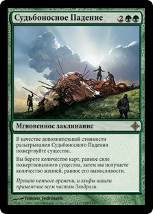 | Rules | As an additional cost to cast this spell, sacrifice a creature. You draw cards equal to the sacrificed creature's power, then you gain life equal to its toughness. |