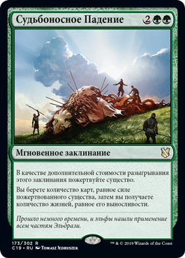 | Rules | As an additional cost to cast this spell, sacrifice a creature. You draw cards equal to the sacrificed creature's power, then you gain life equal to its toughness. |