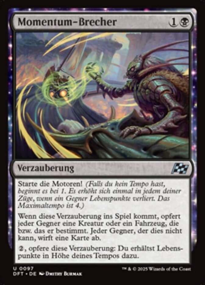 | Rules | Start your engines! (If you have no speed, it starts at 1. It increases once on each of your turns when an opponent loses life. Max speed is 4.) When this enchantment enters, each opponent sacrifices a creature or Vehicle of their choice. Each opponent who can't discards a card. , Sacrifice this enchantment: You gain life equal to your speed. |
