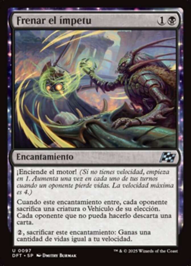 | Rules | Start your engines! (If you have no speed, it starts at 1. It increases once on each of your turns when an opponent loses life. Max speed is 4.) When this enchantment enters, each opponent sacrifices a creature or Vehicle of their choice. Each opponent who can't discards a card. , Sacrifice this enchantment: You gain life equal to your speed. |
