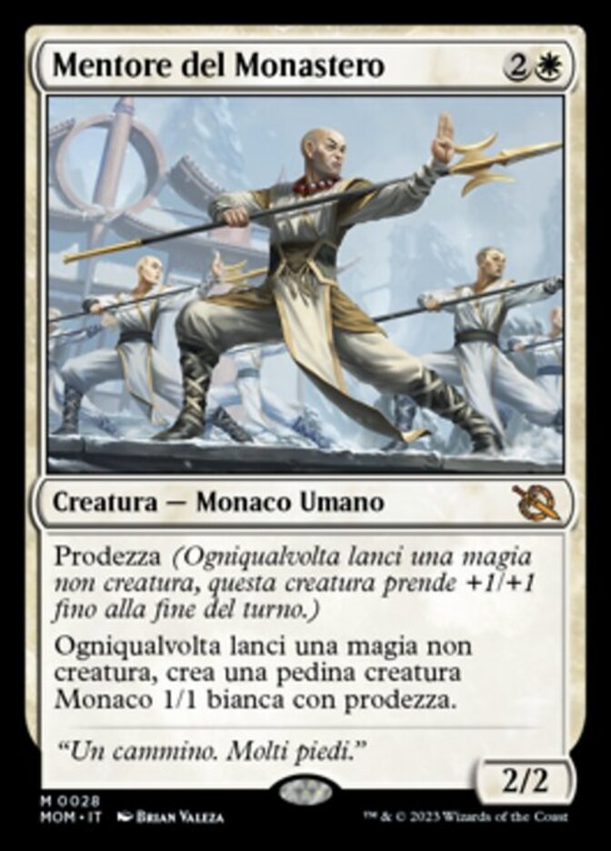 | Rules | Prowess (Whenever you cast a noncreature spell, this creature gets +1/+1 until end of turn.) Whenever you cast a noncreature spell, create a 1/1 white Monk creature token with prowess. |