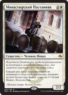 | Rules | Prowess (Whenever you cast a noncreature spell, this creature gets +1/+1 until end of turn.) Whenever you cast a noncreature spell, create a 1/1 white Monk creature token with prowess. |