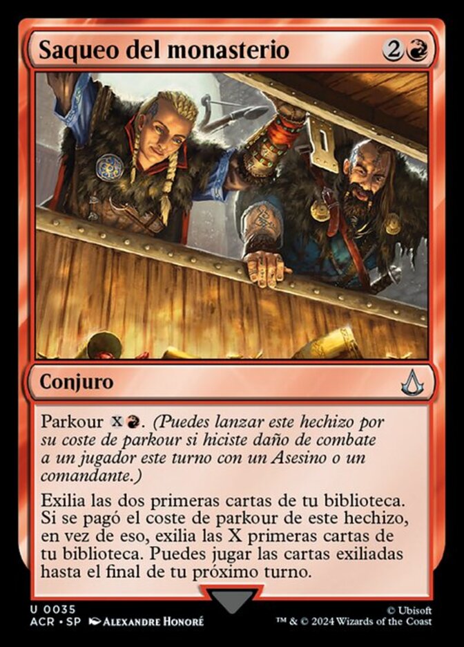 | Rules | Freerunning (You may cast this spell for its freerunning cost if you dealt combat damage to a player this turn with an Assassin or commander.) Exile the top two cards of your library. If this spell's freerunning cost was paid, exile the top X cards of your library instead. You may play the exiled cards until the end of your next turn. |