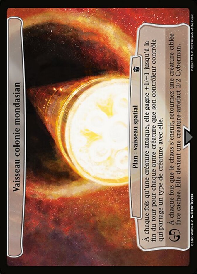 | Rules | Whenever a creature attacks, it gets +1/+1 until end of turn for each other creature its controller controls that shares a creature type with it. Whenever chaos ensues, turn target creature face down. It becomes a 2/2 Cyberman artifact creature. |