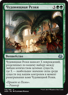| Rules | Monstrous Onslaught deals X damage divided as you choose among any number of target creatures, where X is the greatest power among creatures you control as you cast this spell. |
