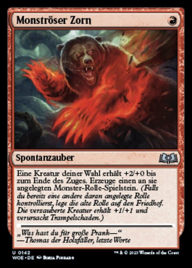 | Rules | Target creature gets +2/+0 until end of turn. Create a Monster Role token attached to it. (If you control another Role on it, put that one into the graveyard. Enchanted creature gets +1/+1 and has trample.) |
