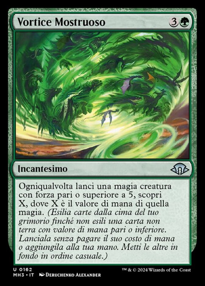 | Rules | Whenever you cast a creature spell with power 5 or greater, discover X, where X is that spell's mana value. (Exile cards from the top of your library until you exile a nonland card with that mana value or less. Cast it without paying its mana cost or put it into your hand. Put the rest on the bottom in a random order.) |