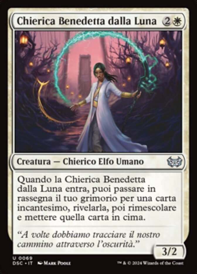 | Rules | Divine Intervention — When Moon-Blessed Cleric enters the battlefield, you may search your library for an enchantment card, reveal it, then shuffle and put that card on top. |