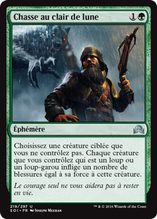 | Rules | Choose target creature you don't control. Each creature you control that's a Wolf or a Werewolf deals damage equal to its power to that creature. |