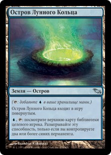 | Rules | (: Add .) Moonring Island enters the battlefield tapped. , : Look at the top card of target player's library. Activate only if you control two or more blue permanents. |