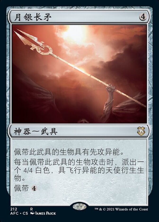 | Rules | Equipped creature has first strike. Whenever equipped creature attacks, create a 4/4 white Angel creature token with flying. Equip |