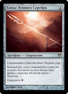 | Rules | Equipped creature has first strike. Whenever equipped creature attacks, create a 4/4 white Angel creature token with flying. Equip |
