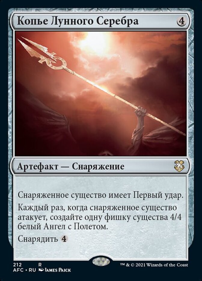 | Rules | Equipped creature has first strike. Whenever equipped creature attacks, create a 4/4 white Angel creature token with flying. Equip |