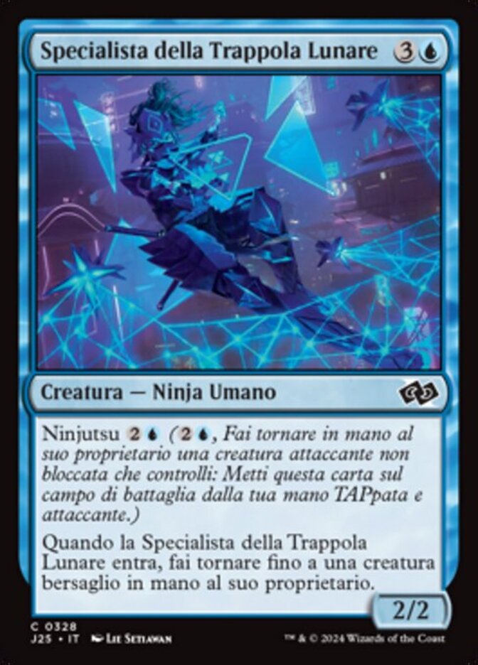 | Rules | Ninjutsu (, Return an unblocked attacker you control to hand: Put this card onto the battlefield from your hand tapped and attacking.) When Moonsnare Specialist enters the battlefield, return up to one target creature to its owner's hand. |