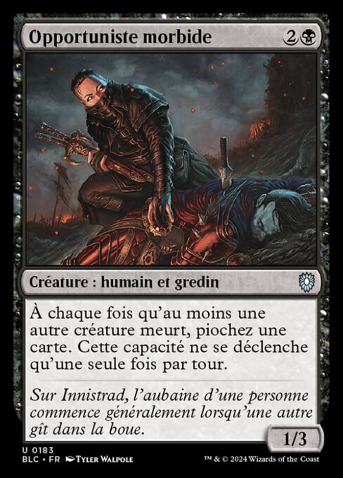 | Flavor | On Innistrad, one person's windfall usually starts with another person lying face down in the mud. |