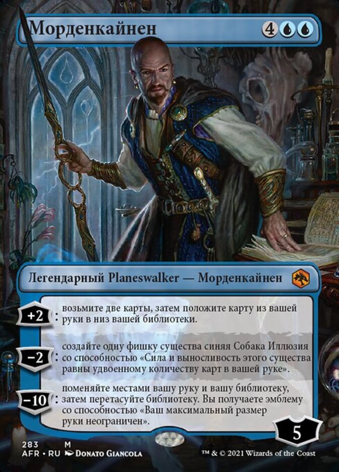 | Rules | +2: Draw two cards, then put a card from your hand on the bottom of your library. −2: Create a blue Dog Illusion creature token with "This creature's power and toughness are each equal to twice the number of cards in your hand." −10: Exchange your hand and library, then shuffle. You get an emblem with "You have no maximum hand size." |