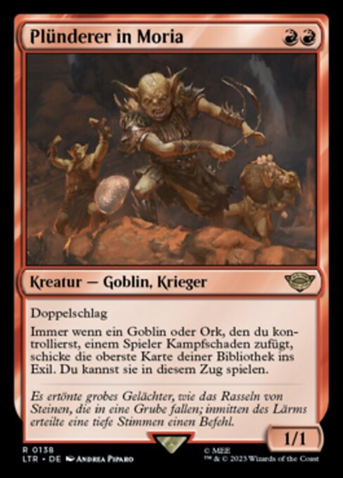 | Rules | Double strike Whenever a Goblin or Orc you control deals combat damage to a player, exile the top card of your library. You may play that card this turn. |