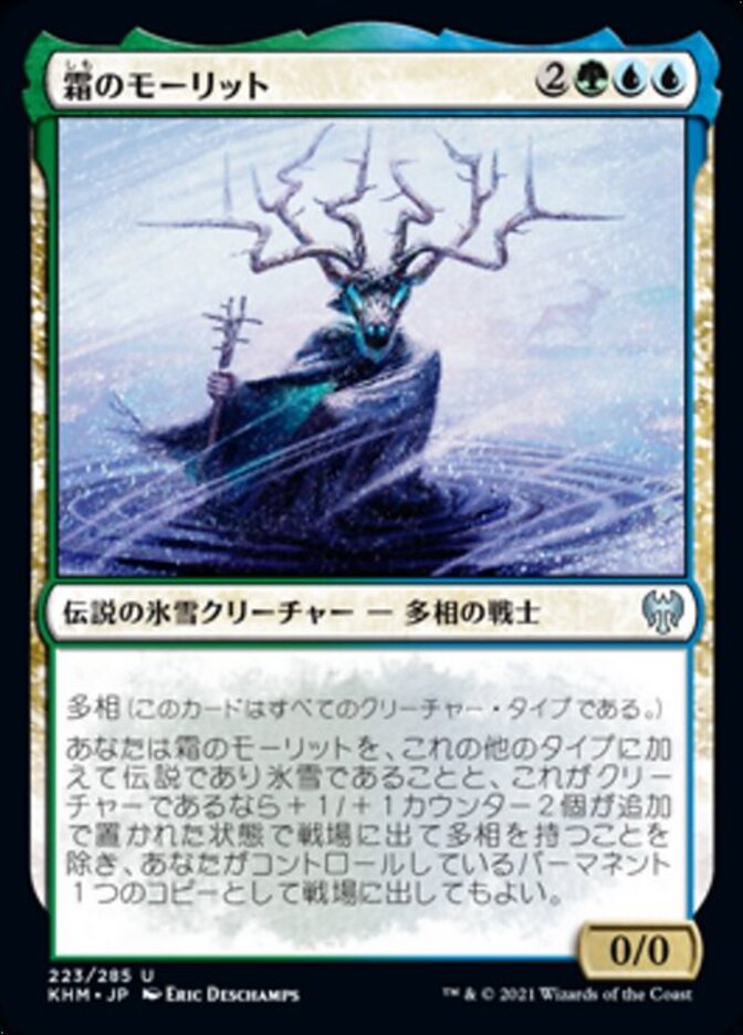 | Rules | Changeling (This card is every creature type.) You may have Moritte of the Frost enter the battlefield as a copy of a permanent you control, except it's legendary and snow in addition to its other types and, if it's a creature, it enters with two additional +1/+1 counters on it and has changeling. |