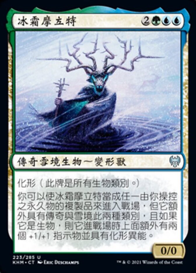 | Rules | Changeling (This card is every creature type.) You may have Moritte of the Frost enter the battlefield as a copy of a permanent you control, except it's legendary and snow in addition to its other types and, if it's a creature, it enters with two additional +1/+1 counters on it and has changeling. |