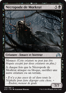 | Rules | Menace (This creature can't be blocked except by two or more creatures.) Whenever Morkrut Necropod attacks or blocks, sacrifice another creature or land. |