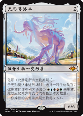| Rules | Changeling (This card is every creature type.) As Morophon, the Boundless enters the battlefield, choose a creature type. Spells of the chosen type you cast cost less to cast. This effect reduces only the amount of colored mana you pay. Other creatures you control of the chosen type get +1/+1. |