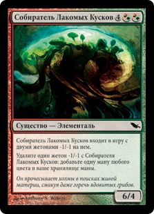 | Rules | Morselhoarder enters the battlefield with two -1/-1 counters on it. Remove a -1/-1 counter from Morselhoarder: Add one mana of any color. |
