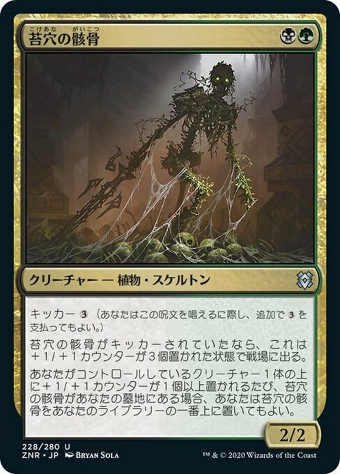 | Rules | Kicker (You may pay an additional as you cast this spell.) If Moss-Pit Skeleton was kicked, it enters the battlefield with three +1/+1 counters on it. Whenever one or more +1/+1 counters are put on a creature you control, if Moss-Pit Skeleton is in your graveyard, you may put Moss-Pit Skeleton on top of your library. |