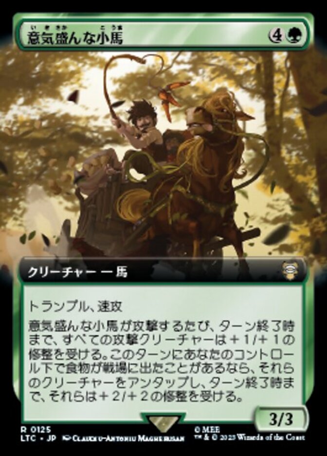 | Rules | Trample, haste Whenever Motivated Pony attacks, attacking creatures get +1/+1 until end of turn. If a Food entered the battlefield under your control this turn, untap those creatures and they get an additional +2/+2 until end of turn. |