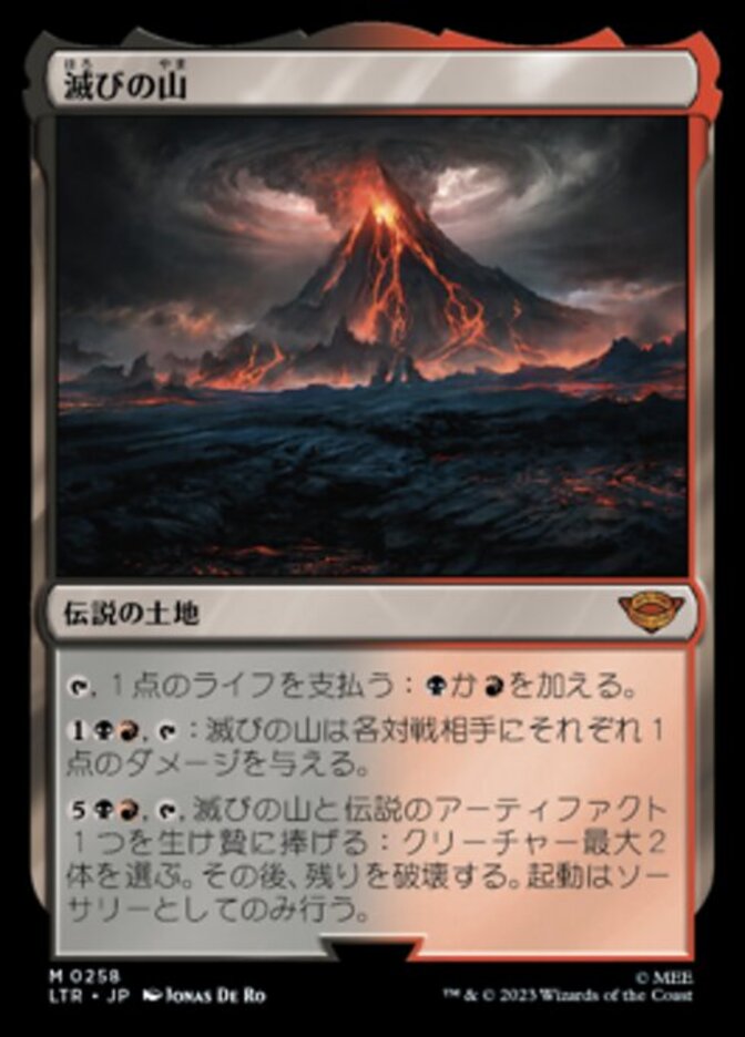 | Rules | , Pay 1 life: Add or . , : Mount Doom deals 1 damage to each opponent. , , Sacrifice Mount Doom and a legendary artifact: Choose up to two creatures, then destroy the rest. Activate only as a sorcery. |