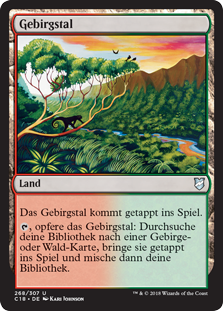 | Rules | Mountain Valley enters the battlefield tapped. , Sacrifice Mountain Valley: Search your library for a Mountain or Forest card, put it onto the battlefield, then shuffle. |