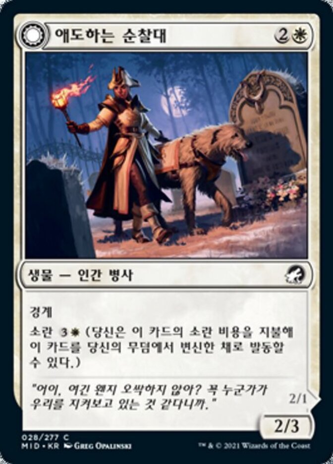 | Rules | Vigilance Disturb (You may cast this card from your graveyard transformed for its disturb cost.) // Flying, vigilance If Morning Apparition would be put into a graveyard from anywhere, exile it instead. |