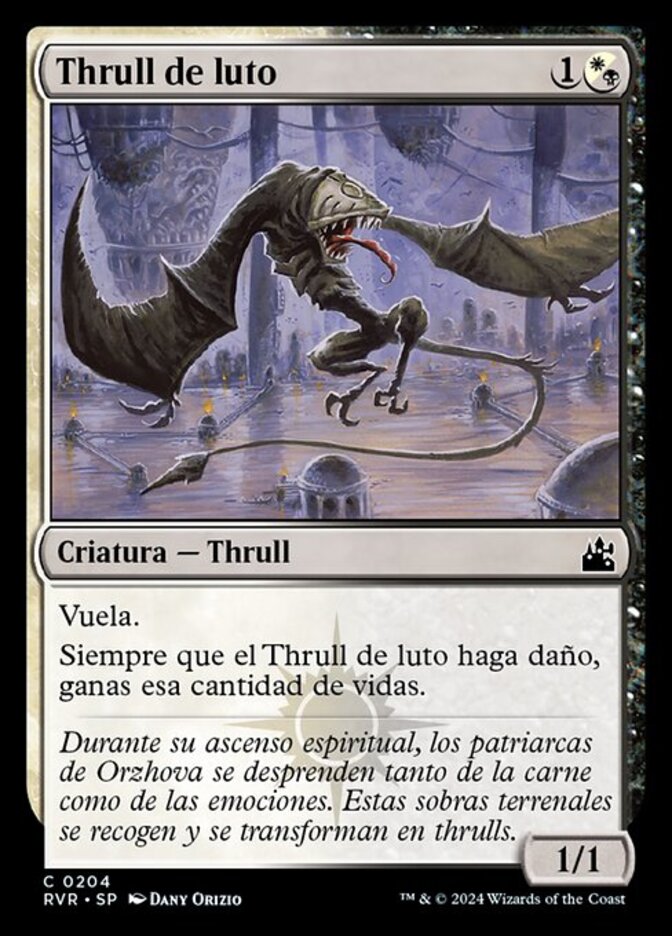 | Rules | ( can be paid with either or .) Flying Whenever Mourning Thrull deals damage, you gain that much life. |
