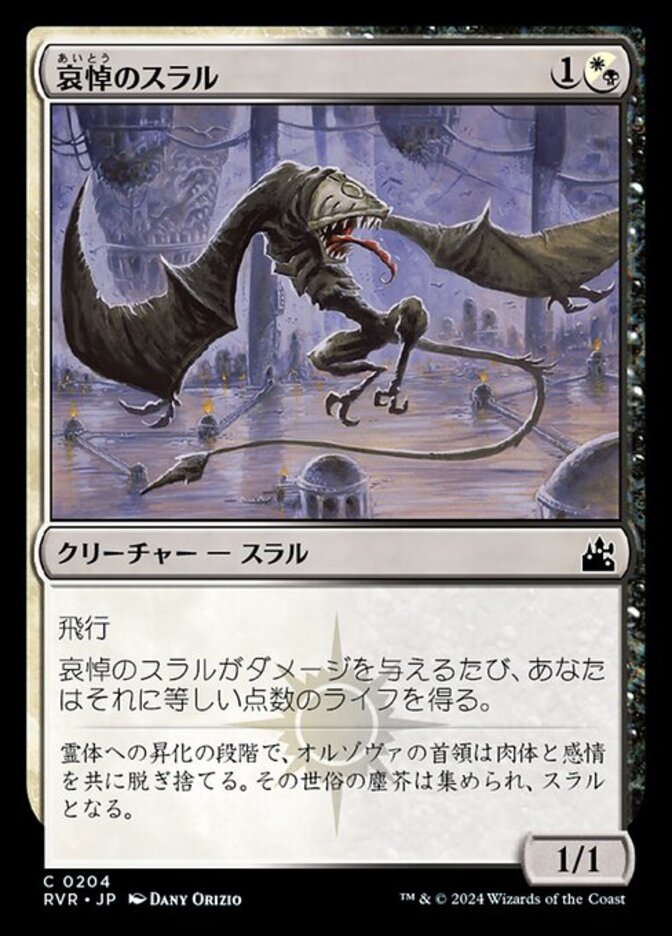 | Rules | ( can be paid with either or .) Flying Whenever Mourning Thrull deals damage, you gain that much life. |