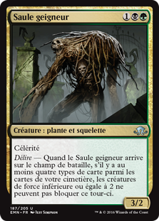 | Rules | Haste Delirium — When Mournwillow enters the battlefield, if there are four or more card types among cards in your graveyard, creatures with power 2 or less can't block this turn. |