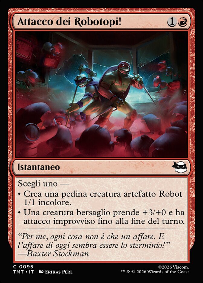 | Rules | Choose one — • Create a 1/1 colorless Robot artifact creature token. • Target creature gets +3/+0 and gains first strike until end of turn. |