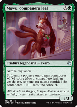 | Rules | Vigilance, trample If one or more +1/+1 counters would be put on Mowu, Loyal Companion, that many plus one +1/+1 counters are put on it instead. |